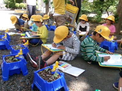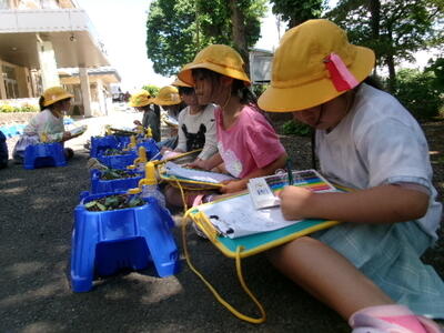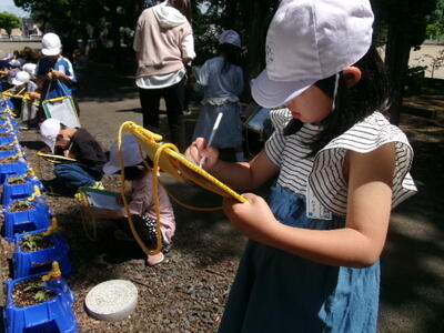 そんなあさがおの様子を1年生が一人一人じっくり観察していました。
