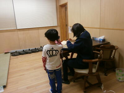今日から聴力検査が始まりました。耳の聞こえの検査です。静かに検査を受けている1年生。すっかり小学生です。