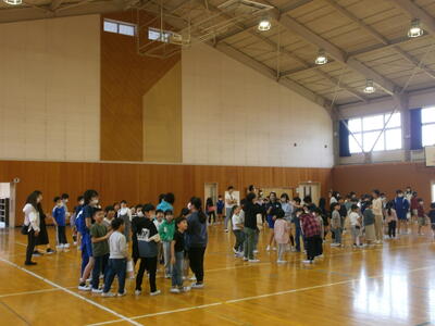縦割り班で自己紹介をしたり、じゃんけんゲームをしたり、猛獣狩りゲームをしたりして楽しい時間を過ごしました。