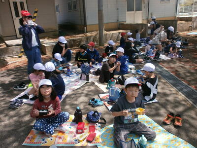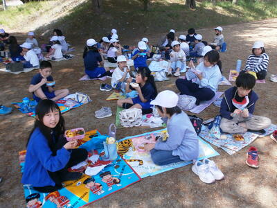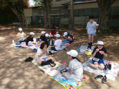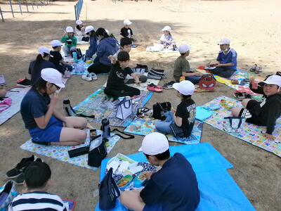 今日のお昼は縦割り班で食べるやっぴーなかよしランチの日でした。色とりどりのお弁当が並びました。みんな美味しそうに食べています。作ってくださった家族に感謝ですね。