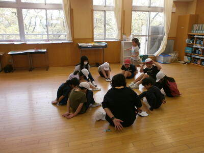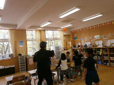 風船で遊んだり、椅子取りゲームやハンカチ落としで遊んだりしてとても楽しそうでした。異年齢集団で遊ぶことも良い体験ですね。子どもたちにとっては楽しい1日になったようです。