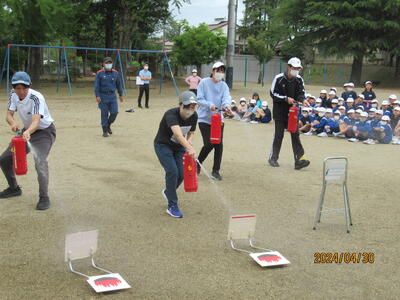 消防署の方から講話をいただき、その後初期消火訓練も行いました。