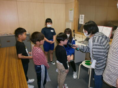 現在、昼の放送の時間に1年生インタビューが行われています。1年1組から順番にインタビューしていますが、みんな上手に受け答えができています。