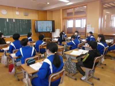 話の聞き方も上手です。話す・聞く態度ができている6年生。みんなが意欲的に学習に取り組んでいます。