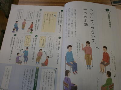 1の1は国語の教科書を開いてお勉強がスタートしていました。みんなで話し合いもできていました。すごいですね。