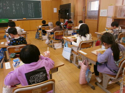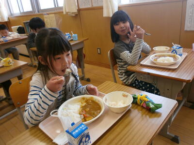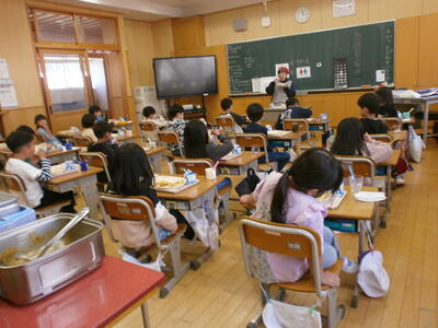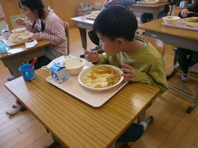 1年生も上手に配膳し、おいしくいただきました。2年生以上もおいしそうに食べていました。