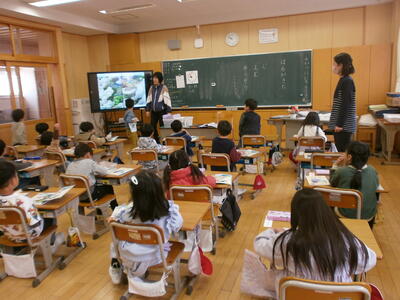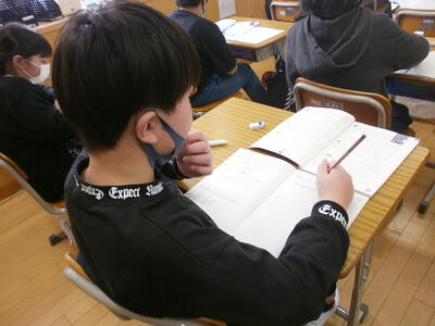 5年生は、小数点のある数を10倍、100倍したらどうなるかを学習していました。先生の話を真剣に聞く姿、分かったことをノートにまとめる姿、友達と学び合う姿…みんなで学習する姿が見られます。