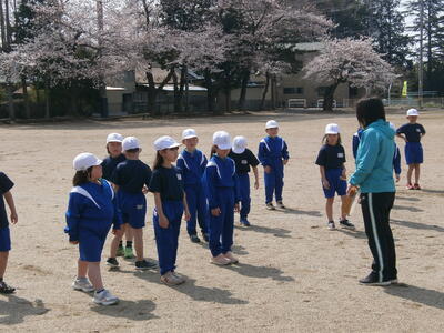 2年生がかけっこをしていました。5月の運動会に向けて準備を進めます。
