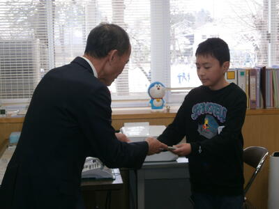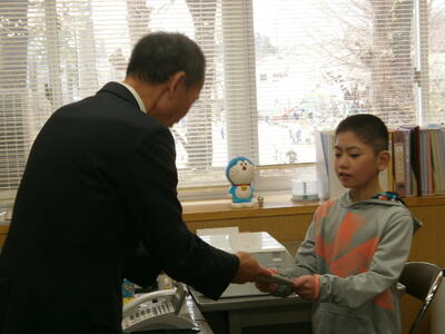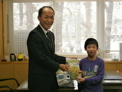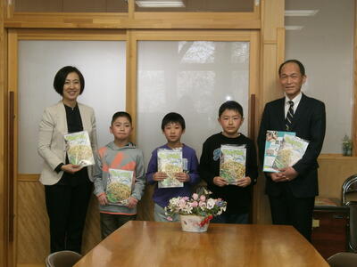 今日は、JA東西しらかわ農業協同組合の皆様においでいただき、『ちゃぐりん(JAで発行している農業に関する話題を盛り込んだ子ども向けの雑誌)』の贈呈式を行いました。贈呈式では代表の3名がJAの代表理事専務様からちゃぐりんをいただきました。