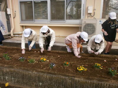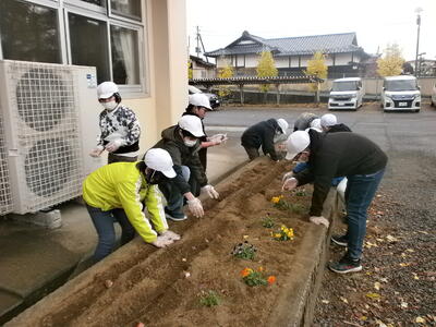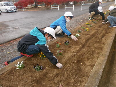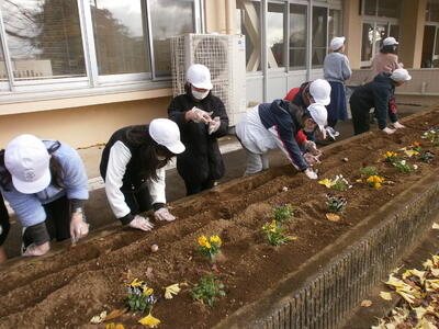 28日に4年生がパンジーを植え、今日は5年生がチューリップの球根を植えてくれました。球根を優しく土の中に埋めてくれました。きっと春にはかわいい花が咲くはずです。