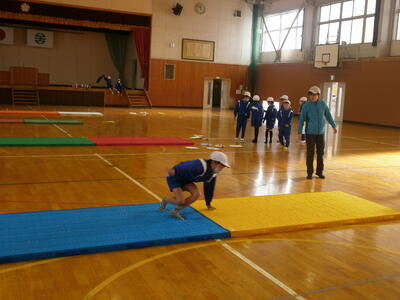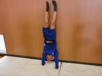 3年生が、マット運動や壁倒立にチャレンジしていました。