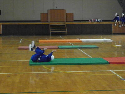 マット運動では両手と両足、背中やお尻を使って体を支えたりはね返したりします。全身を使っていろいろな動きをすることでさまざまな能力を育みます。柔軟性や機敏性など日常生活に役立つ力が育ちます。けがをしないようにしっかり体を動かしていきましょう。