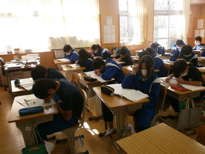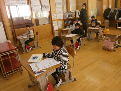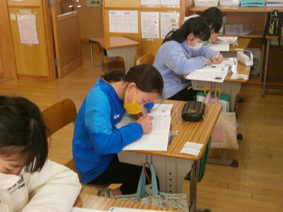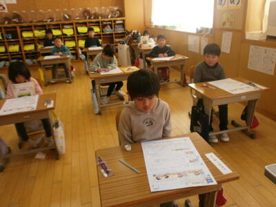 今日から全校算数テストが始まりました。まずは、1・2年生がテストに取り組みました。1年生の様子をのぞいてみるとみんな一生懸命に問題に取り組んでいました。「絶対、100点とります!!」と気合い十分です。