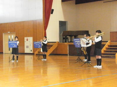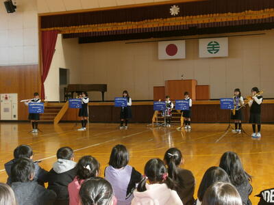 4年以上の部員が、3つのグループに分かれて曲を奏でます。少ない人数での演奏になりますので、一人一人の音が大切になりますが、精度を高められるように本番にむけて練習を重ねている子どもたちです。