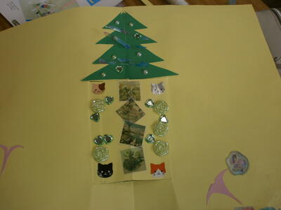2023年12月5日 12時20分4年生が図工の時間に飛び出すハッピーカードを作っていました。時節柄、クリスマス関係のカードが多く見られましたが、誕生日カードやがんばれカードなど、それぞれ工夫して作っていました。