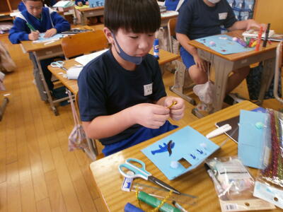 カッターを上手に使いながらカードを作っていきます。みんな楽しそうに作っており、見ているこちらがハッピーになりました。4年生のハッピーのお裾分け、ありがとうございました。