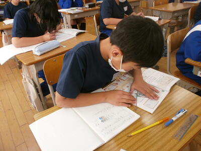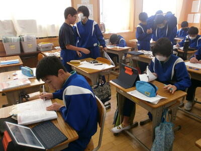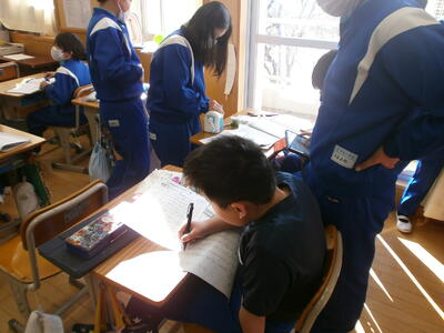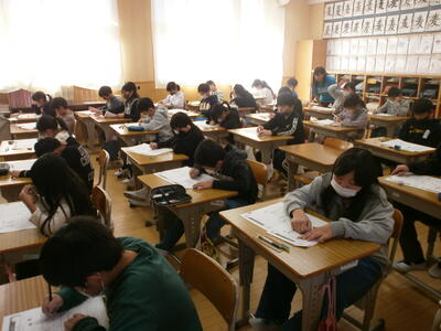 学期末も近くなり、どの学級でもプリントやテストで今までの学びの確かめをしています。自分ができたところ、できなかったところを確認し、もう一度復習することはとても大切なことです。今年1年で身に付けなければいけない力をつけるために、プリントやテストに取り組んでいきましょう。