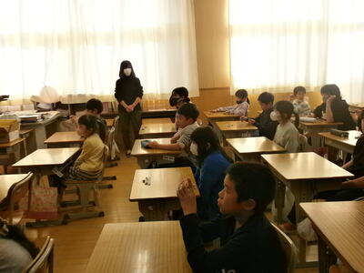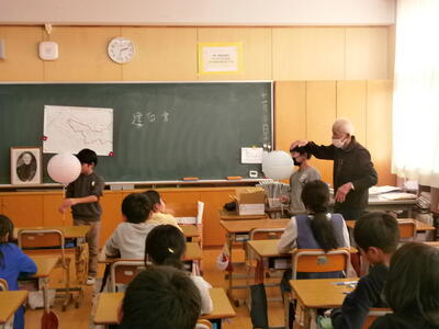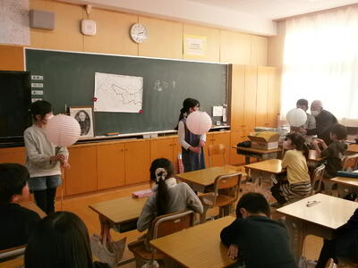 今日は、星吉右衛門さんの子孫である星一吉様においでいただき、4年生に吉右衛門さんの功績を紹介していただきました。自分たちで調べたことだけでは分からなかったことがたくさんあったようです。何より、自分たちが調べていた人の子孫にお会いしたことに感動していました。良い経験ができましたね。