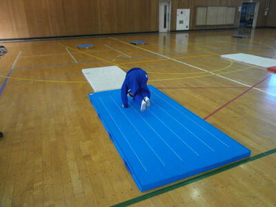 2年生は、体育館でマット運動に取り組んでいました。上手にできるかな。整列も上手です。