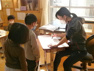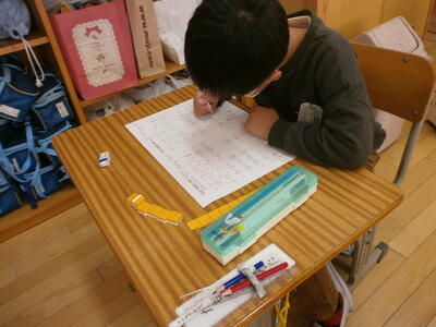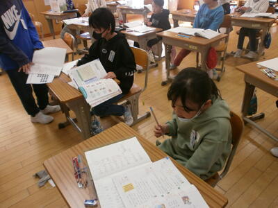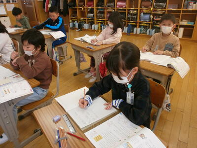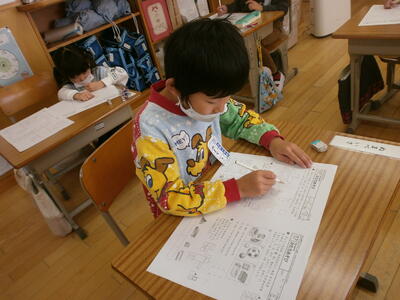 1年生は、プリントを使ってどんどん復習を進めていました。今まで学習したことがしっかり身についている子どもがほとんどです。素晴らしいですね。