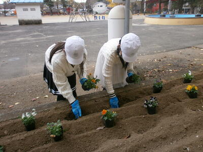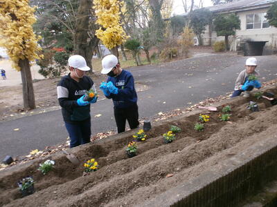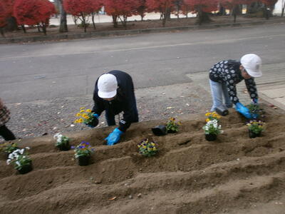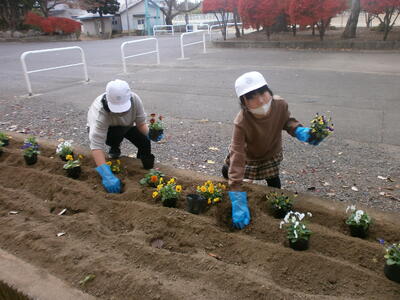 午後は、花壇にパンジーの花を植えてくれました。4年生、ありがとうございました。