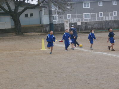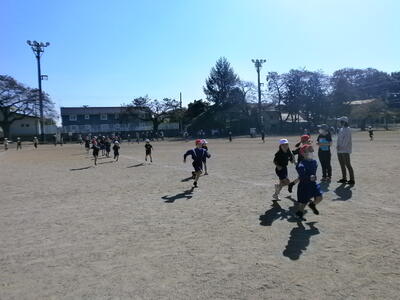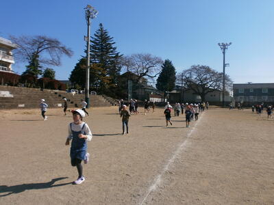 1・2年生が、持久走記録会に向けて練習を行っていました。