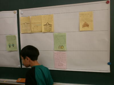 4年生は社会科で学習している福島県の歴史遺産を各自まとめ、年表形式にしていました。