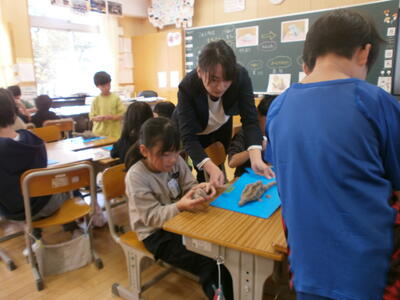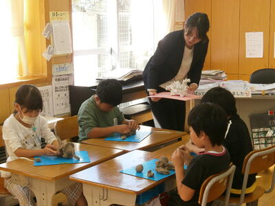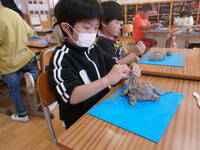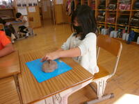 2の1の子どもたちが、粘土で「むぎゅたん」を作っていました。