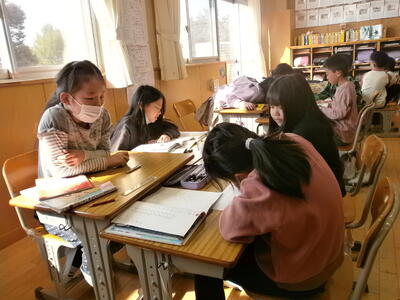 司会・記録・時間を計る人などの役割を決め、班ごとに話し合っています。上手に話し合う姿が見られてすばらしいです。きっと1年生が喜ぶ本を選ぶことができると思います。