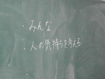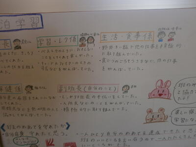 明日はみんなで活動します。一緒に2日間生活します。人の気持ちを考えることで楽しい宿泊学習になるはずです。ここにもう一つ、時間を守ることも確認していました。