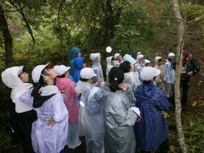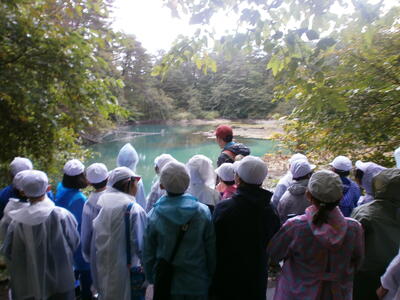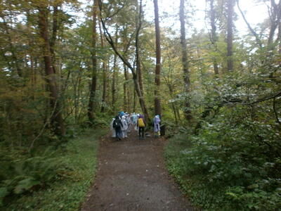 あいにくの雨の中で始まった五色沼ハイキングですが、きれいな沼の色やその秘密、磐梯山噴火の後が今でも残っていることを学習しました。