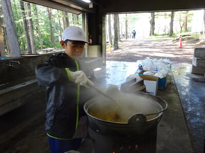 2日目のメインの活動は野外炊飯です。カレーづくりに奮闘しました。