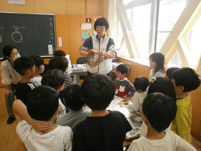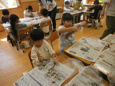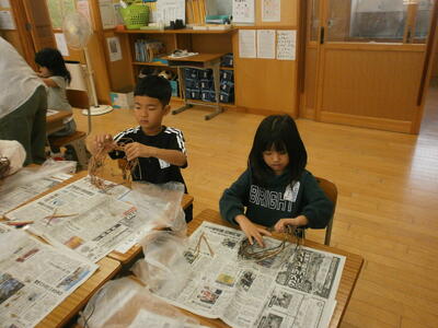 先生の姿を見て、子どもたちも自分で作ってみます。