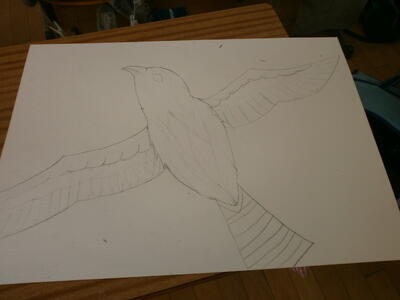 ある子どもは、よだかの星をモチーフに絵を描いていました。構図に工夫が見られます。