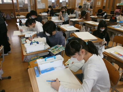 2024年10月17日 16時10分6年生が図工の学習で絵を描いていました。