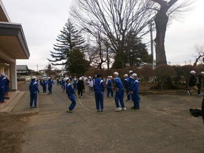 短縄はもちろん、長縄の練習もしています。これは、仲間との協力が必要な種目です。がんばれ、矢吹っ子!!。