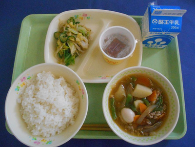 今日は、福島県産のかつお、矢吹町産のきゅうりを使用した給食です。