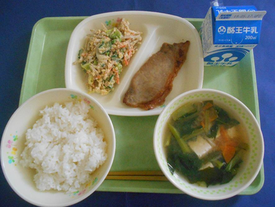 ごはん 豆腐のみそ汁 豚肉のしょうが焼き ごぼうサラダ 牛乳