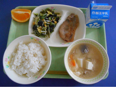 ごはん 牛乳 豚肉のしょうが焼き 海藻サラダ 豚汁 オレンジ
