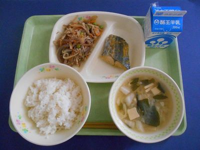 ごはん 牛乳 さわらの西京みそ焼き もやしとこんにゃくのそぼろ炒め 凍み豆腐のみそ汁