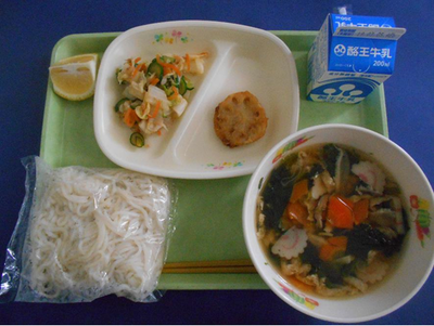 よくかんで食べると、いいことが4つありました。みなさん覚えているでしょうか? ①食べすぎを防いで肥満予防する ②消化・吸収を助ける ③虫歯を予防する ④脳の働きを活発にする めん類は、あまり噛まずに食べてしまうかもしれませんが、ぜひかむことを意識して食べてみてください。