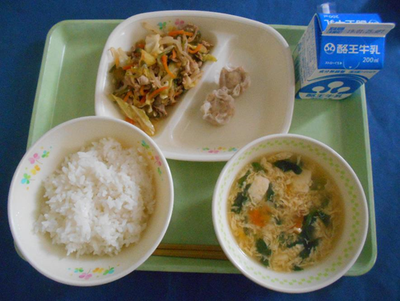 ごはん 牛乳 シューマイ ホイコーロー 中華コーンスープ