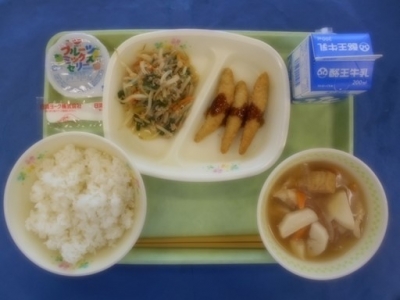 ごはん 牛乳 ワカサギフライ(ソース) もやしのひき肉炒め