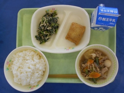 ごはん 牛乳 信田煮 春菊のごまあえ 肉じゃが