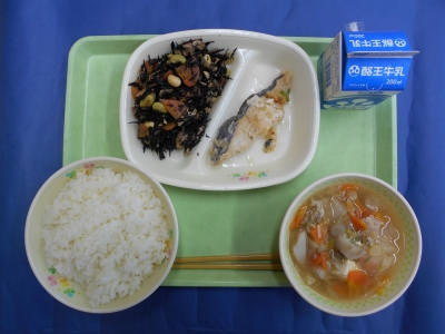 ごはん 牛乳 白身魚の薬味焼き ひじきの炒め煮 けんちん汁