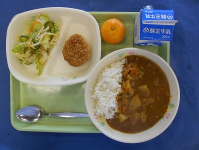 カツカレーを食べて、気持ち的にも強くなってほしいので、この献立にしました。