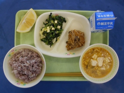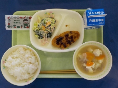 あゆり組の給食委員が考えた献立です。テーマは「ヘルシー」です。