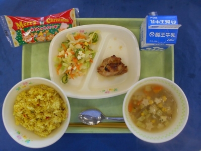 今年最後の給食です。クリスマスにちなんだ献立です。