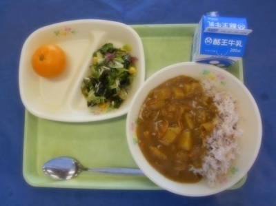 チキンカレーライス(七穀ごはん) 牛乳 海藻サラダ みかん