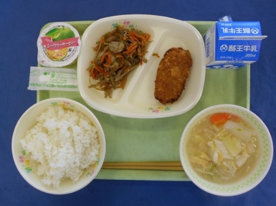 ごはん 牛乳 キャベツメンチカツ(ソース)